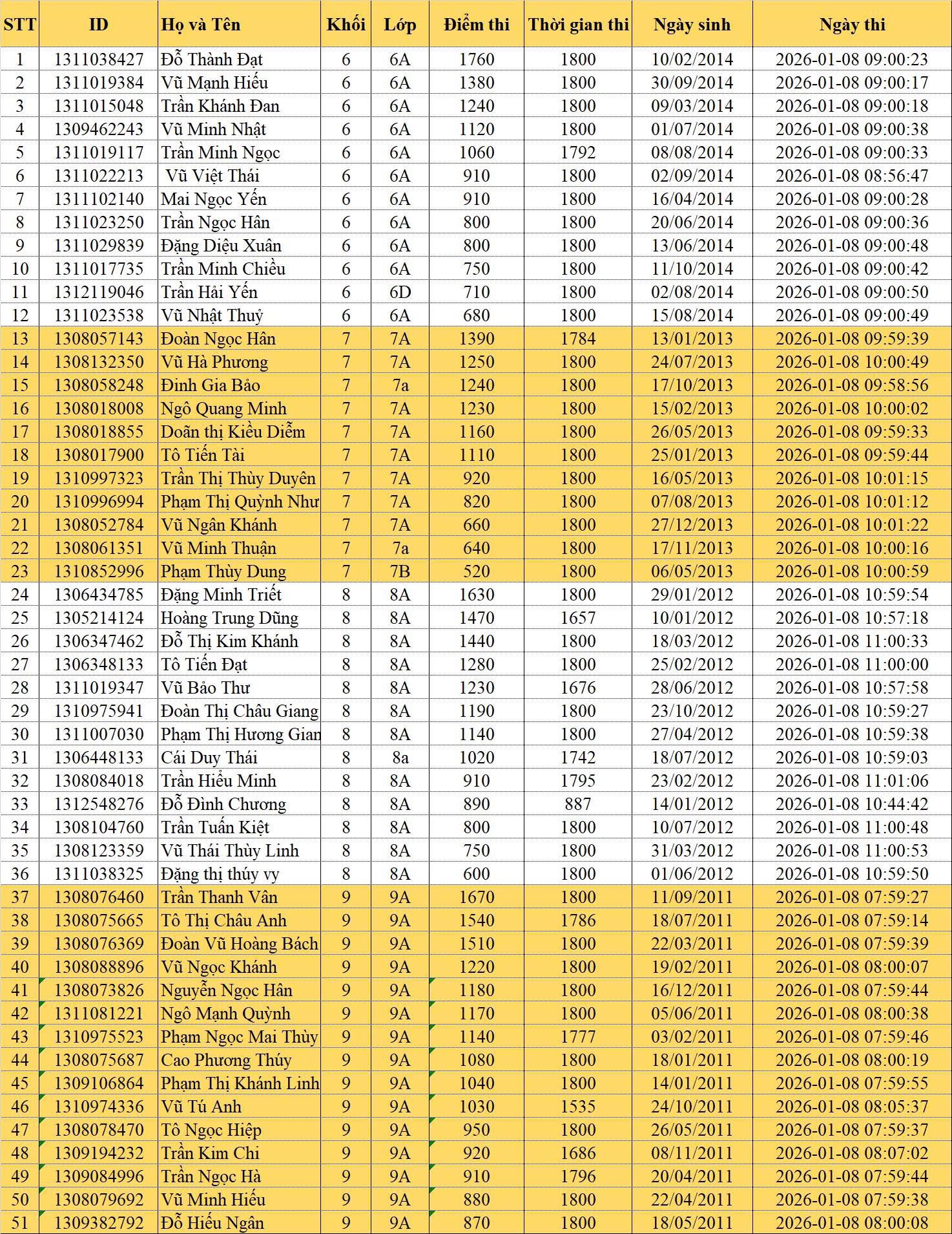 Chúc mừng các em học sinh đã hoàn thành xuất sắc phần thi của mình.