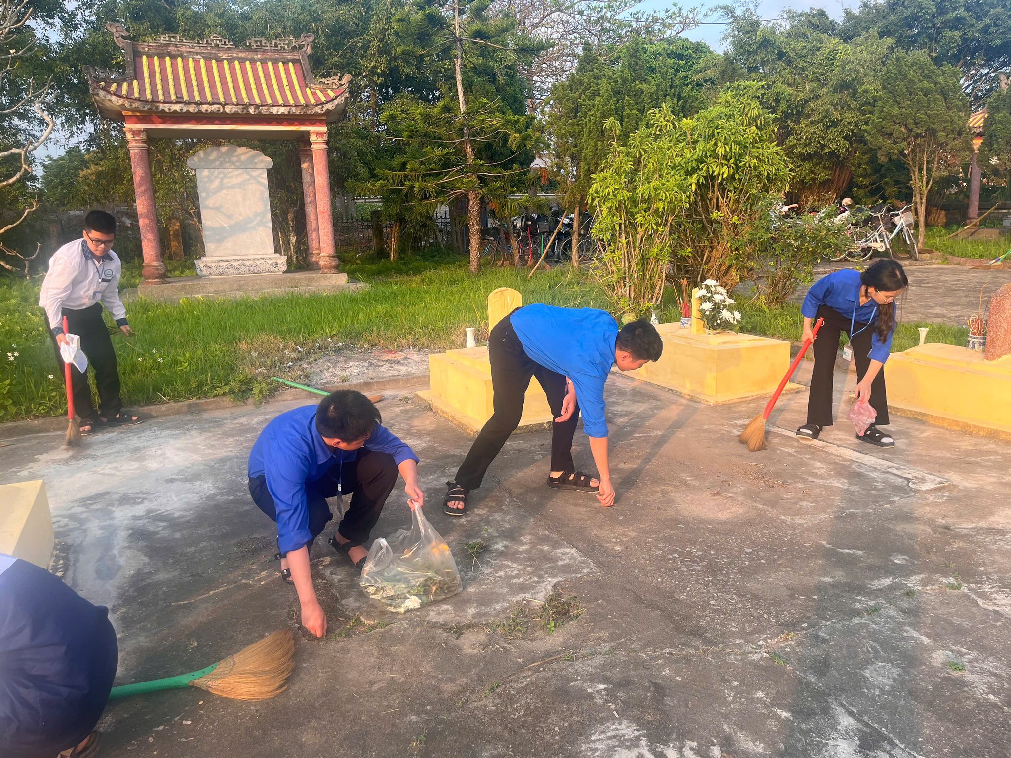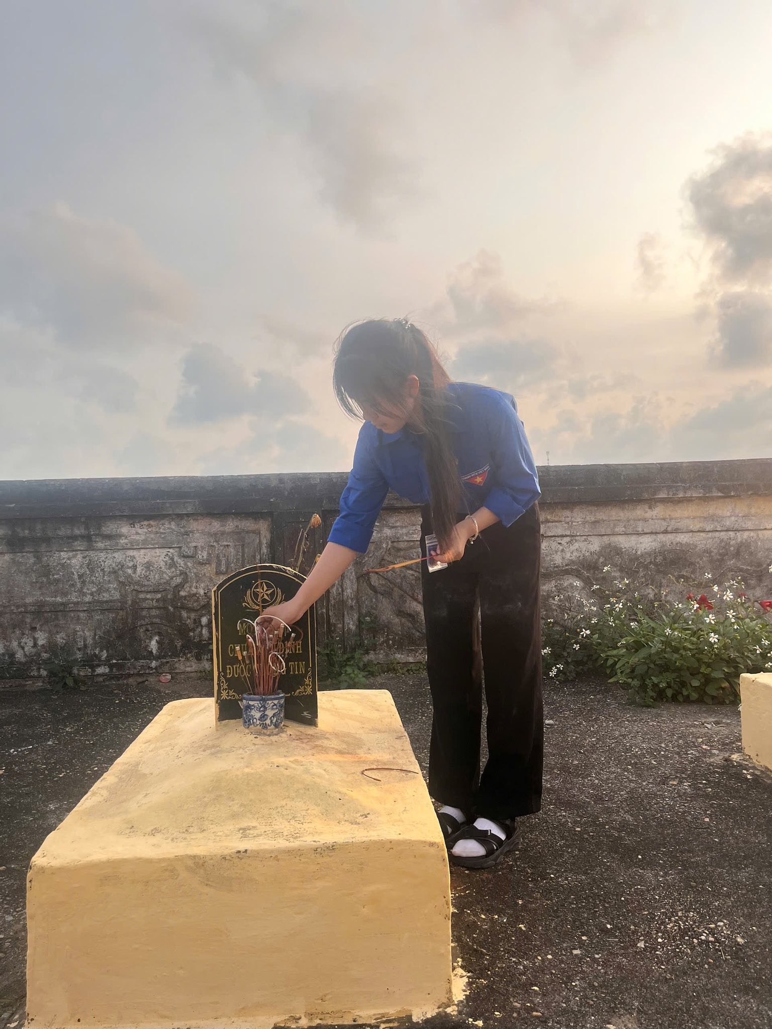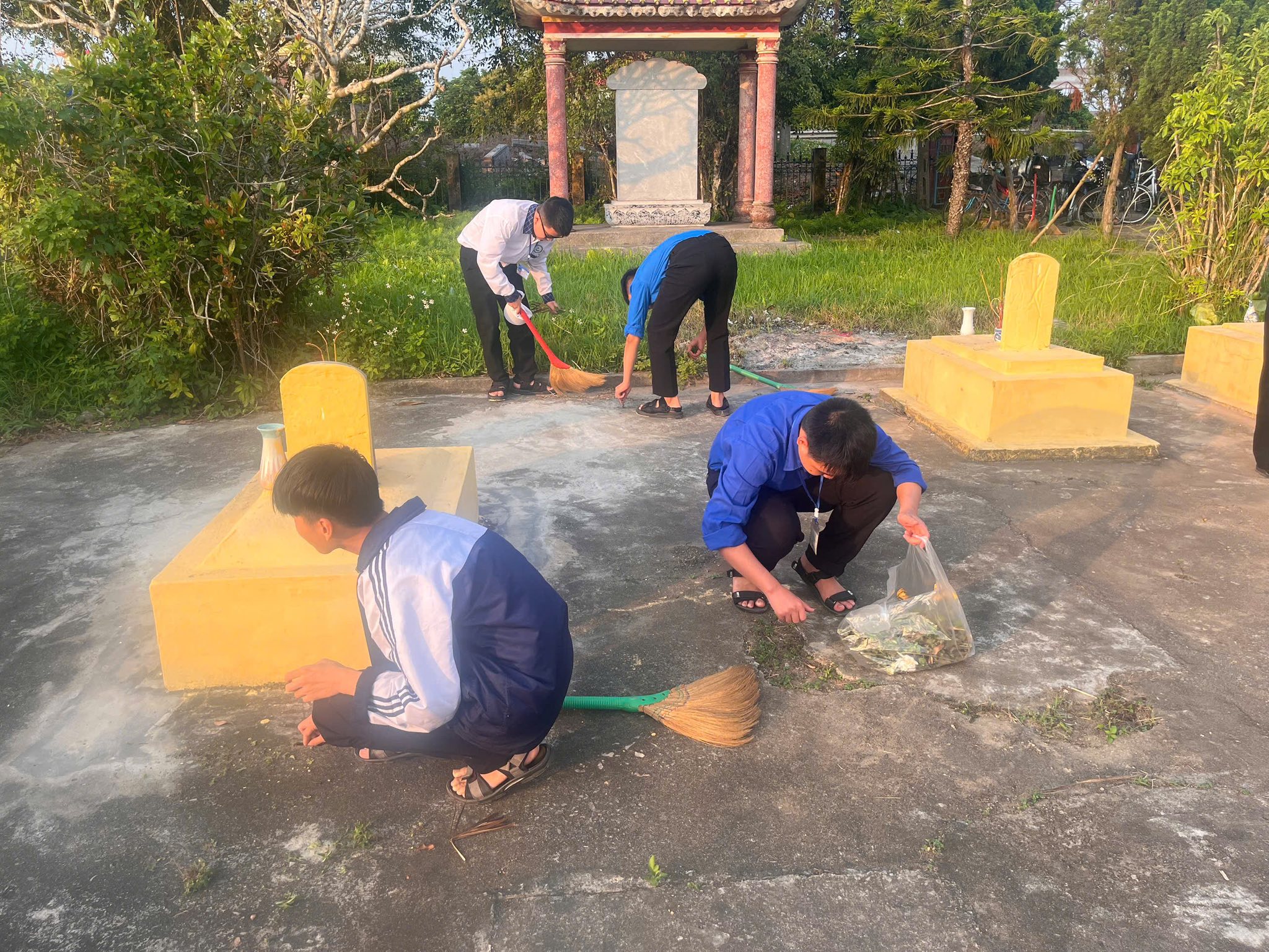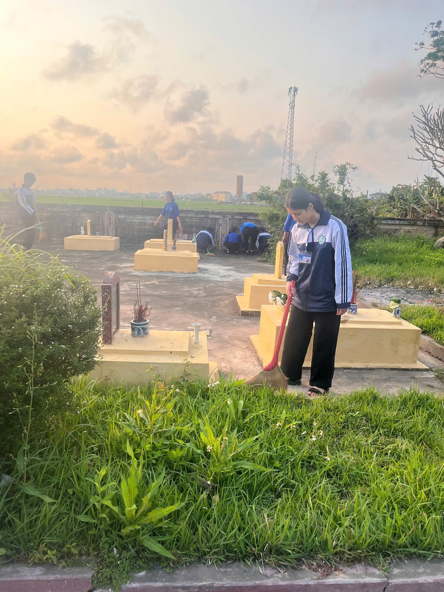 Không chỉ dừng lại ở lễ viếng, các tân Đoàn viên đã cùng nhau ra quân chăm sóc, chỉnh trang và làm đẹp cho các phần mộ liệt sĩ. Những bàn tay trẻ trung, nhiệt huyết của các em nâng niu từng nhành hoa, lau dọn từng khuôn viên, như một lời hứa sắt son: “Sống, học tập và rèn luyện sao cho xứng đáng với sự hy sinh của thế hệ cha anh đi trước.”