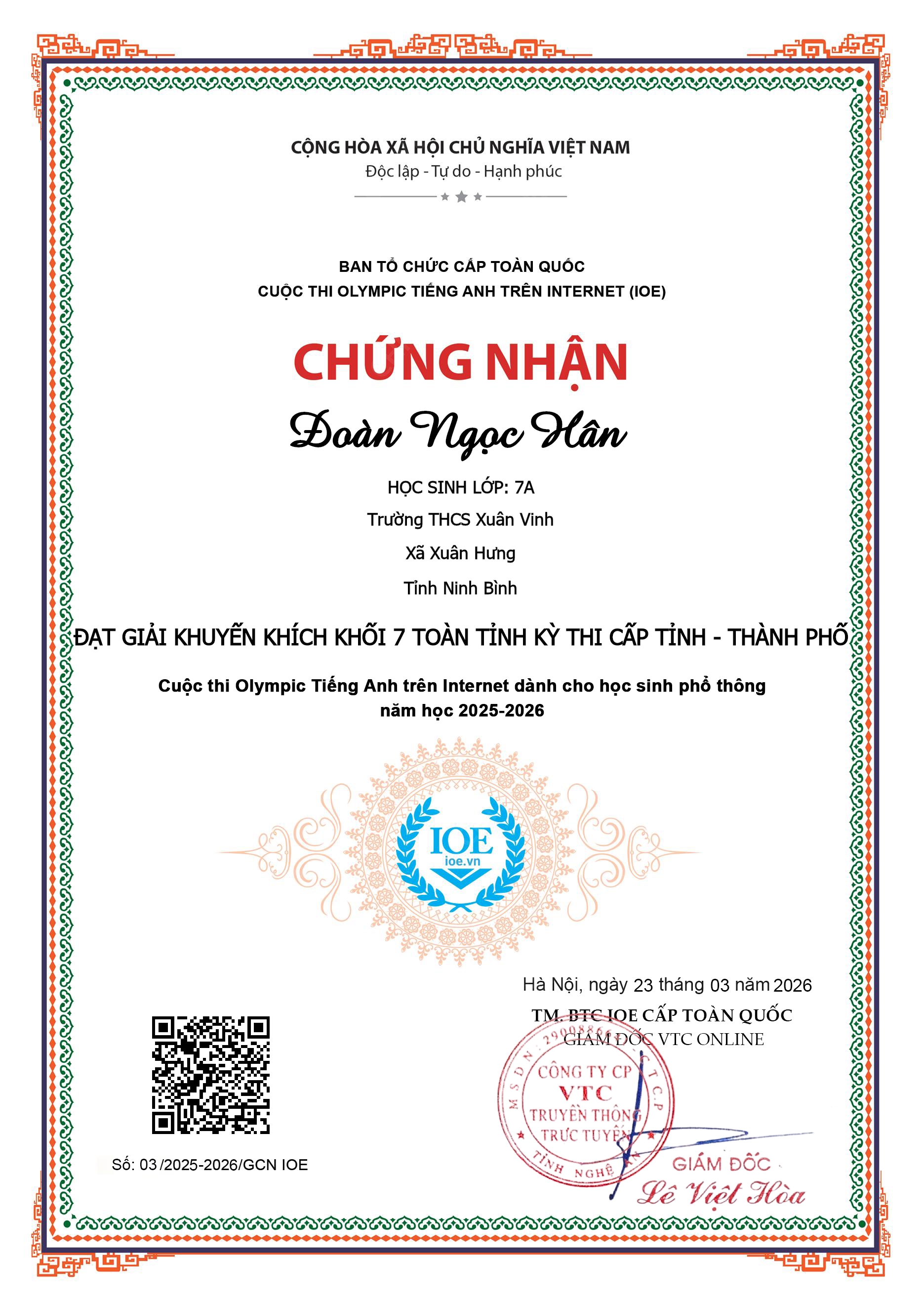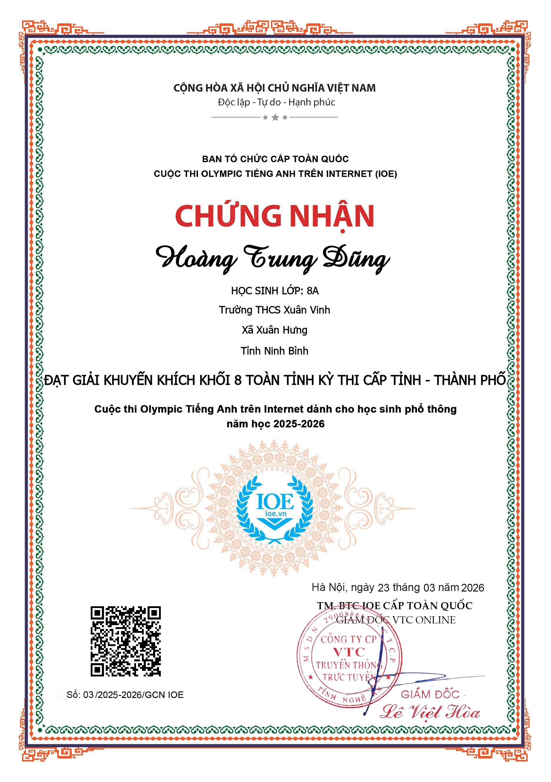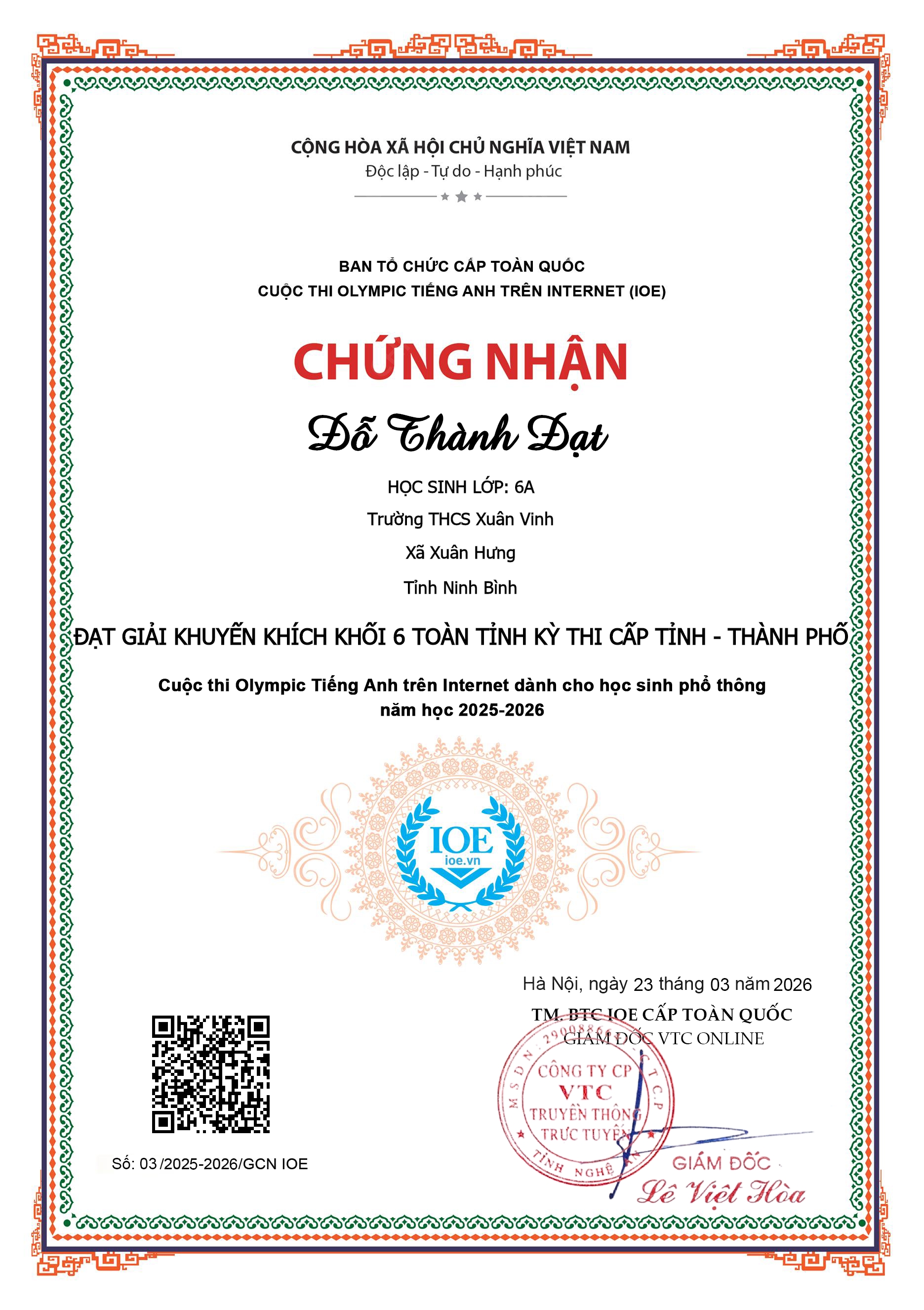 Chúc các em – những Đoàn viên, đội viên ưu tú – luôn giữ vững ngọn lửa đam mê, tiếp tục chinh phục những đỉnh cao mới, xứng đáng là niềm tự hào của mái trường THCS Xuân Vinh thân yêu!