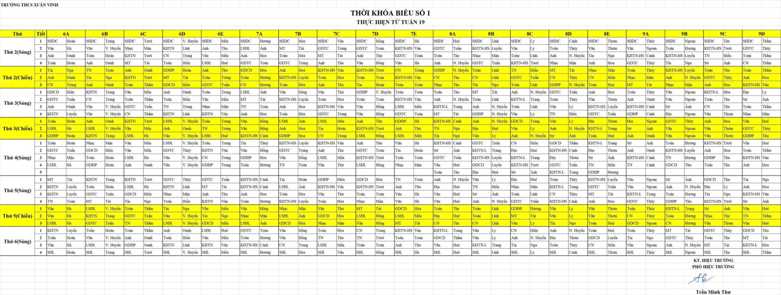 THỜI KHOÁ BIỂU THỰC HIỆN TỪ TUẦN 19