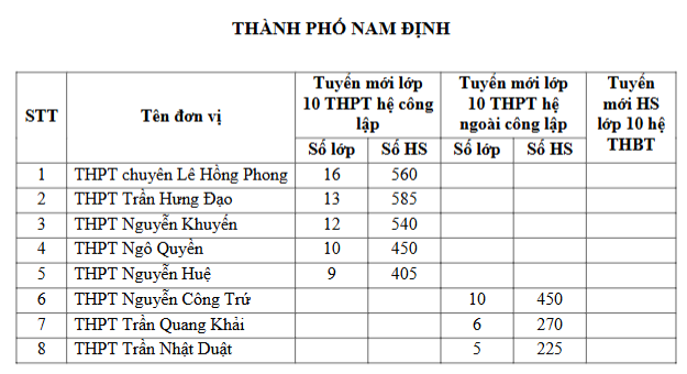 THÔNG TIN THI TUYỂN SINH LỚP 10 THPT TỈNH NAM ĐỊNH